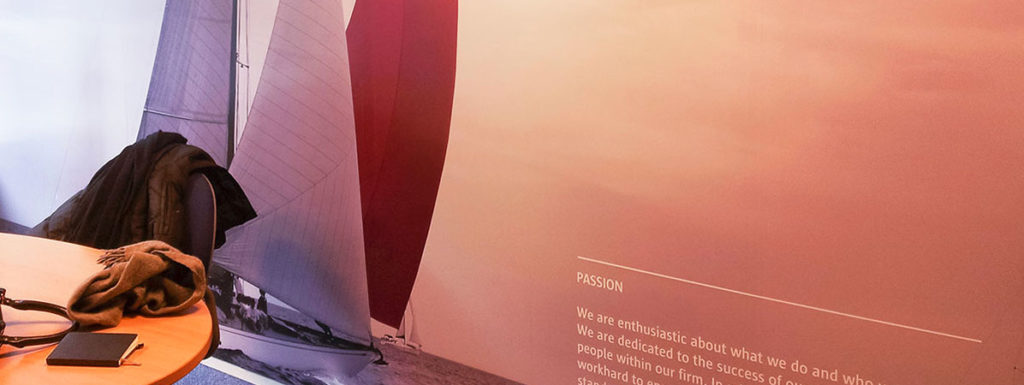 Création et impression avec encres écologiques de murs avec photos géantes. Ces adhésifs muraux ont ensuite été laminés avec un adhésif mat, lui permettant ainsi de le protéger et d’être lessivé à volonté.