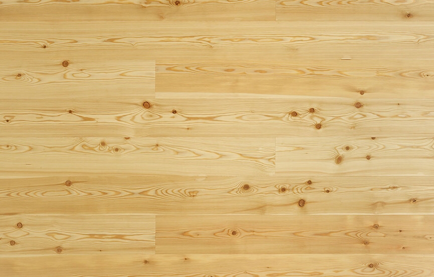 Sa texture ondulée et ses nombreux nœuds en font un bois très contrasté qui révèle toute sa beauté avec le vernissage. Tout comme pour l’épicéa, nous utilisons un assemblage de trois plis massifs pour garantir au mélèze que nous proposons une solidité et une esthétique à toute épreuve .